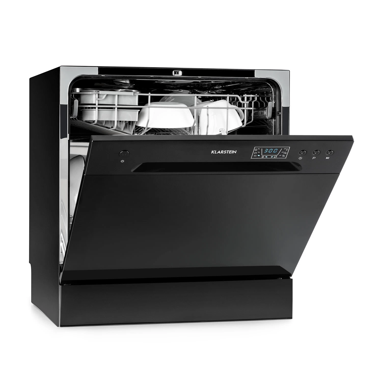 Glasklare Gläser und Geschirr: Der Klarstein Amazonia 8 Geschirrspüler spült zuverlässig im Kleinformat. Er hat ideale Maße für Single-Küchen, Ferienwohnungen oder Wochenendhäuschen! Fast unscheinbar durch seine Größe übernimmt er deinen Abwasch, dabei finden bis zu 8 Maßgedecke gleichzeitig Platz in der modernen Mini-Geschirrspülmaschine. Über das 3-Tasten-Bedienfeld kannst du aus 6 vorteilhaften Programmen wählen – so nimmt es die Amazonia 8 selbst mit starkem Schmutz auf, während sie in der Küche ein wahrer, designstarker Blickfang ist.
