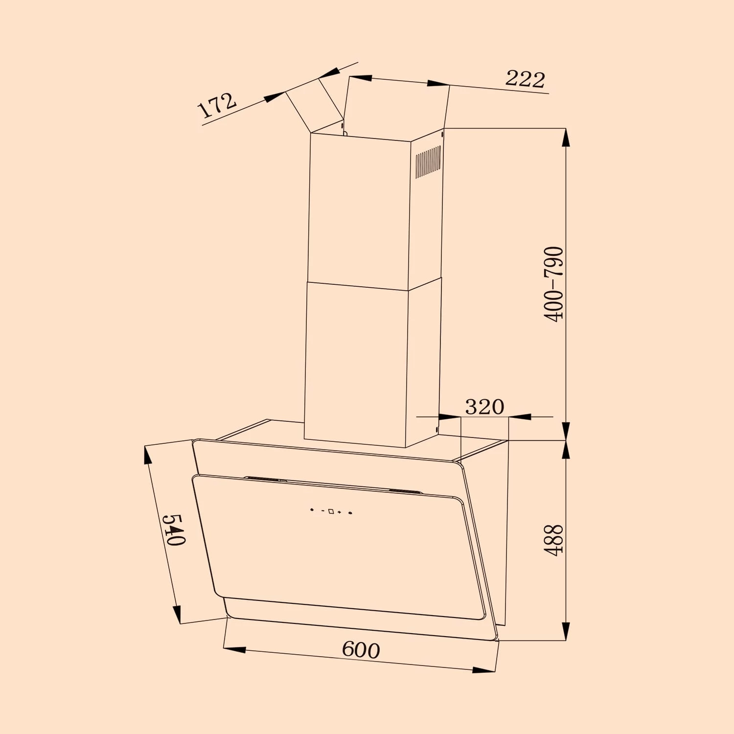 Aurica 60 Dunstabzugshaube 60cm 600 M³/h LED Touch Glas