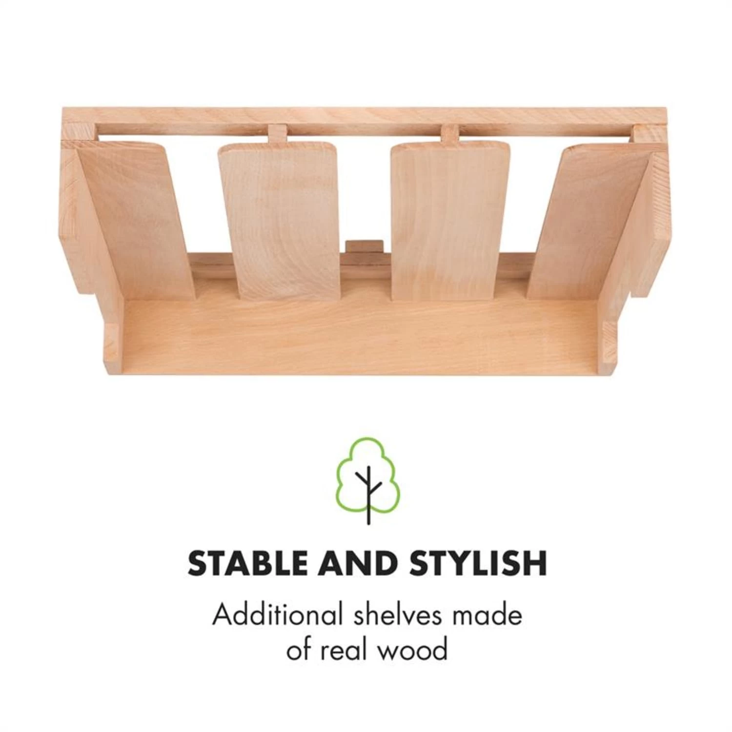 Immer perfekt temperiert: Kaum etwas ist wichtiger, als die richtige Trinktemperatur des Weins. Damit diese nicht beim Dekantieren in warme Weingläser verloren geht, empfiehlt es sich, die Gläser selbst ebenfalls zu kühlen – so steht dem perfekten Weingenuss nichts im Wege. Aus diesem Grund ist beim Klarstein Barossa 77 Duo Weinglas-Regal-Set eben dieser Regalboden aus Echtholz direkt enthalten. Einfach in den Weinkühlschrank einsetzen und schon können auf drei Schienen Weiß- oder Rotweingläser direkt mit dem Wein zusammen aufbewahrt werden.