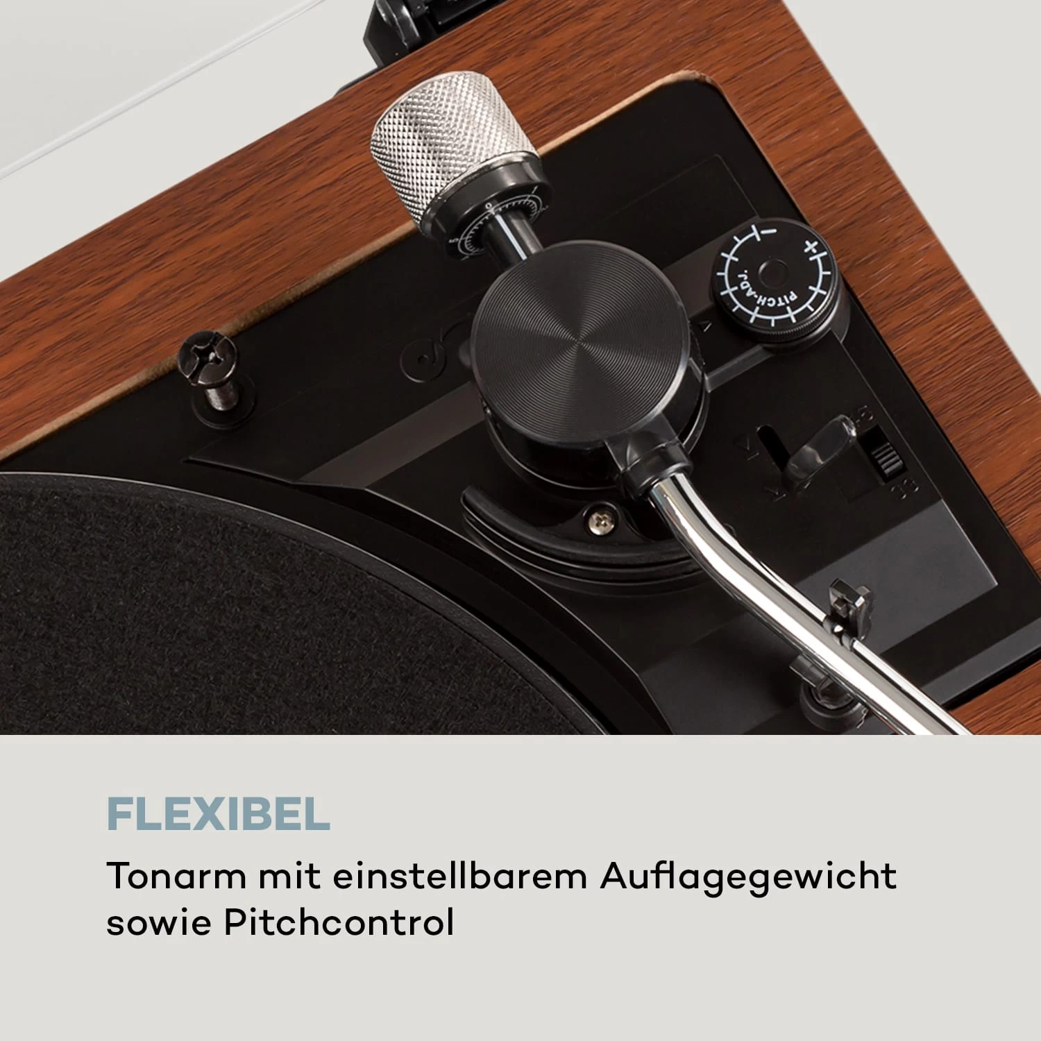 - 2 Geschwindigkeiten Plattenspieler: 33/45 Umdrehungen pro Minute