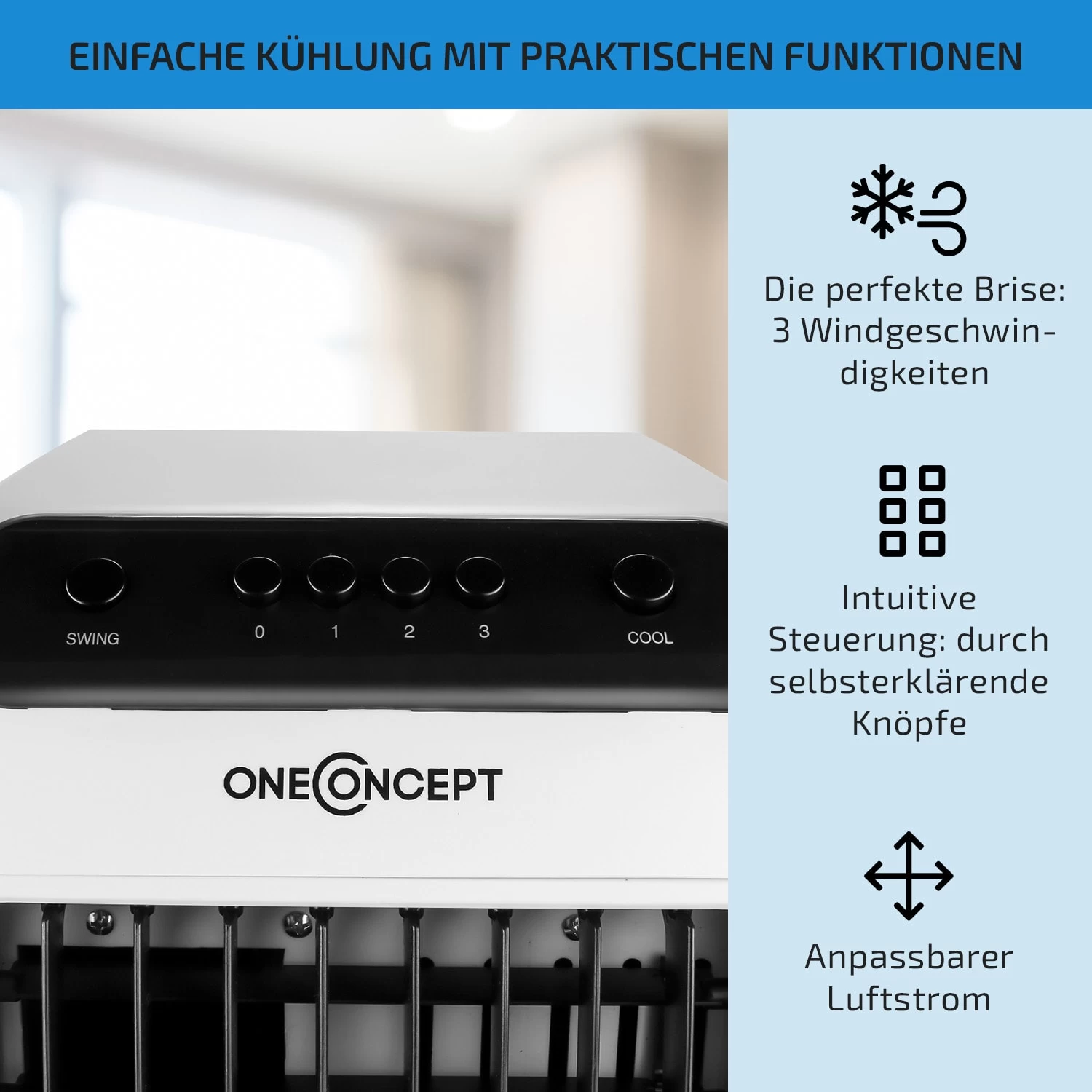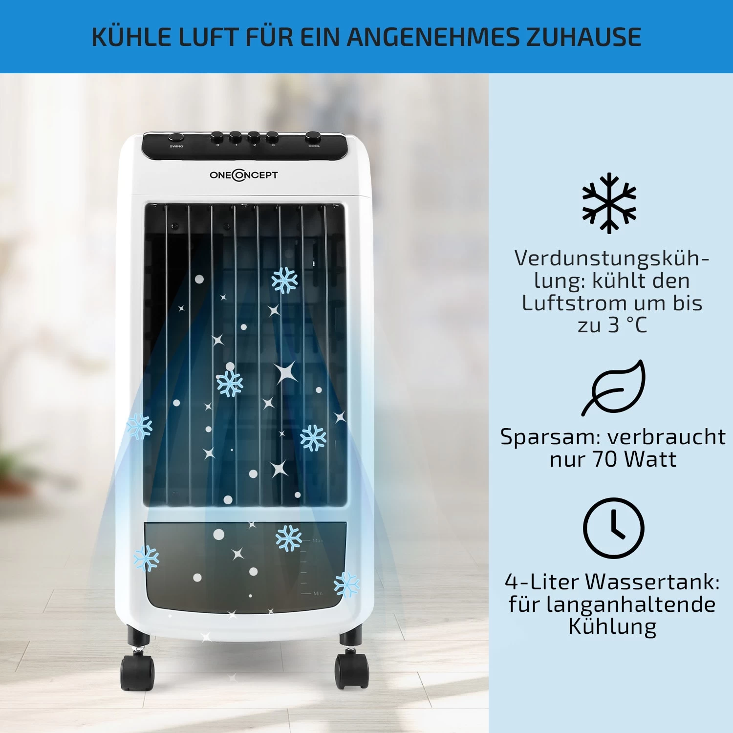 Carribean Blue 3-in-1 Luftkühler 402 M3/h 70 W 4 Ltr Oszillation Mobil