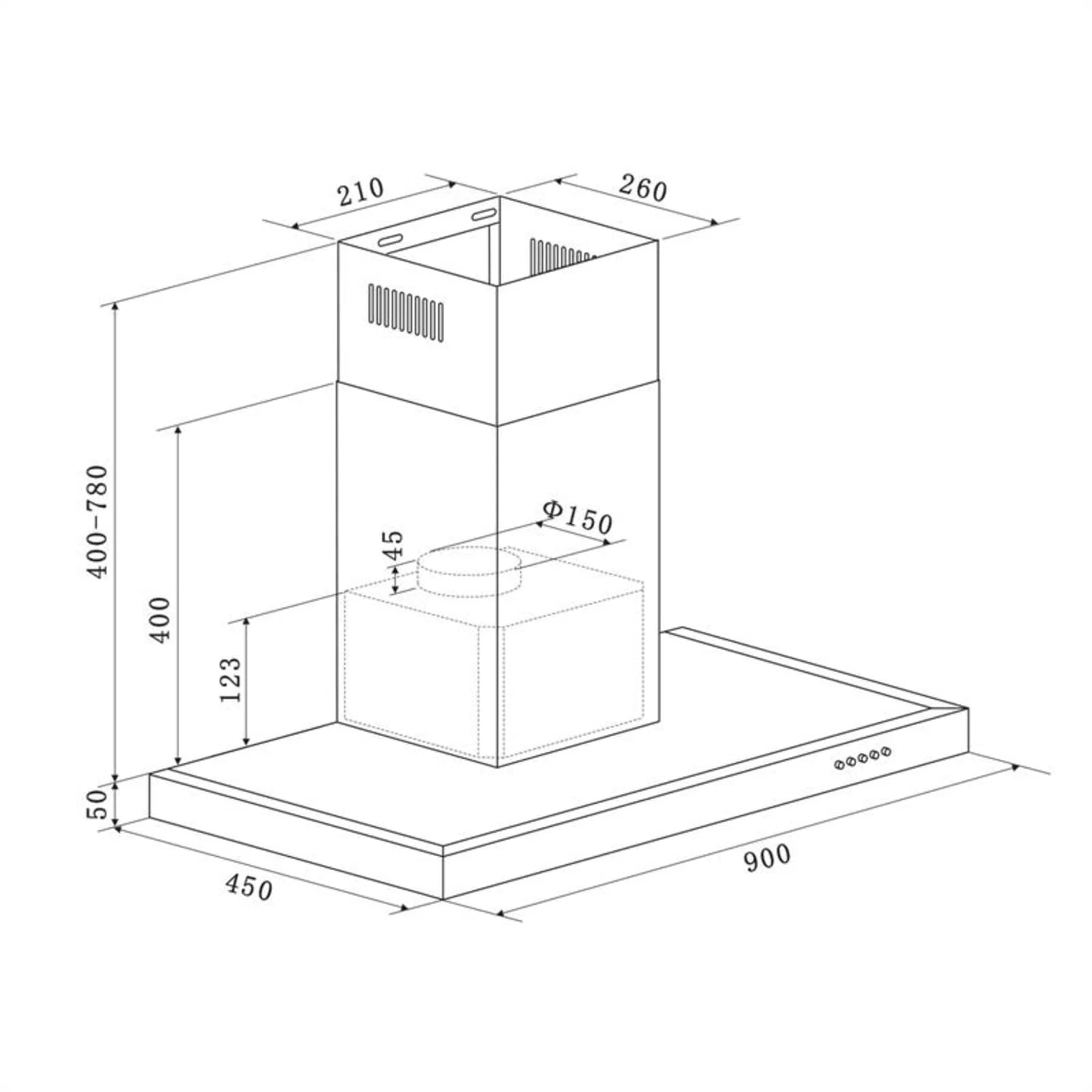 Darya Dunstabzugshaube 90cm 310 M³/h Edelstahl Silber