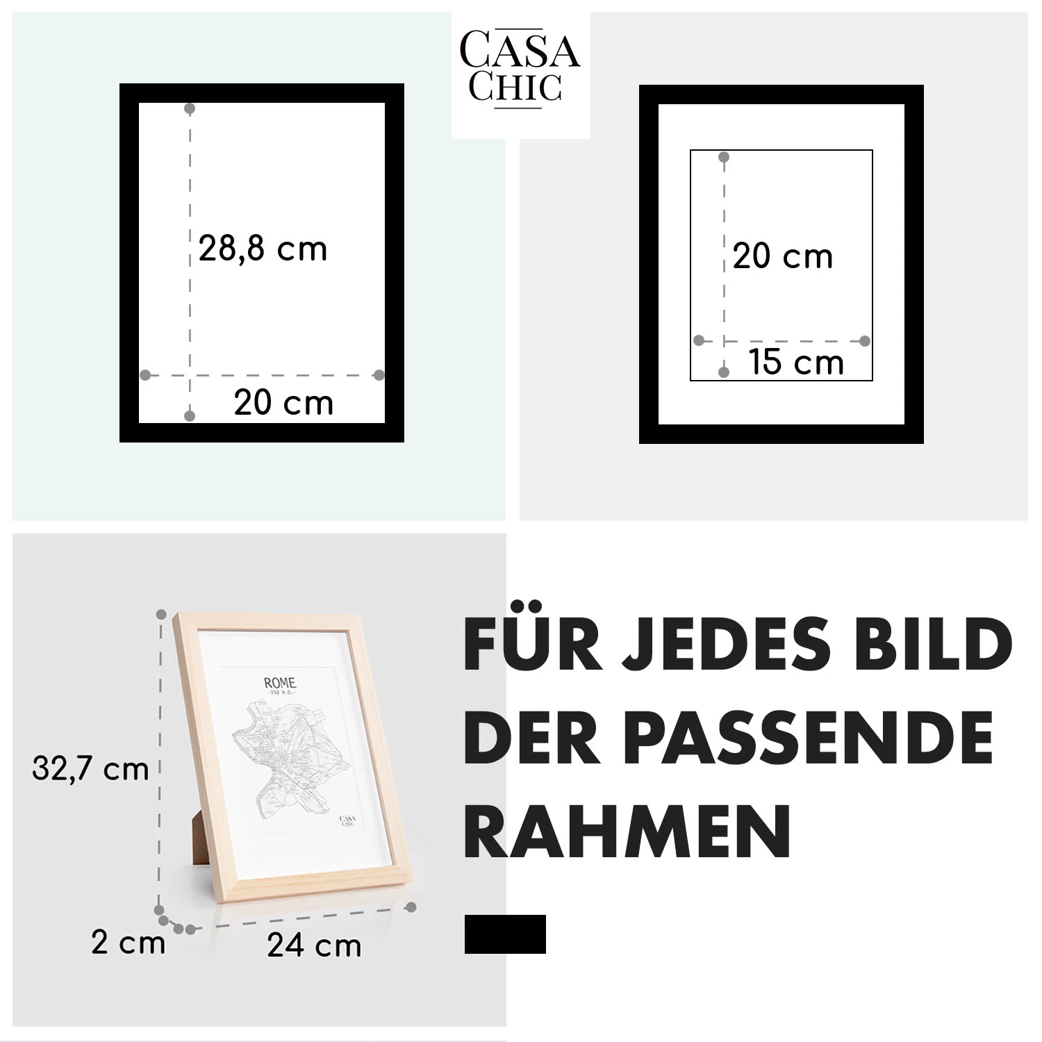 Mit dem schlichten Edinburgh Echtholz-Bilderrahmen von Casa Chic by blumfeldt kommen deine Fotos und Bilder sowohl im Hoch- als auch im Querformat ideal zur Geltung. Gestalte wunderschöne Wandcollagen oder arrangiere deine Lieblingsfotos auf dem Sideboard oder im Regal. Mit den Edinburgh Rahmen bist du flexibel. Das mitgelieferte Passepartout überlässt dir die Wahl des passenden Bildausschnitts. Sein breites Rahmenprofil schenkt einen edlen Kontrast und die Frontscheibe aus Plexiglas schützt vor Staub und Schmutz.