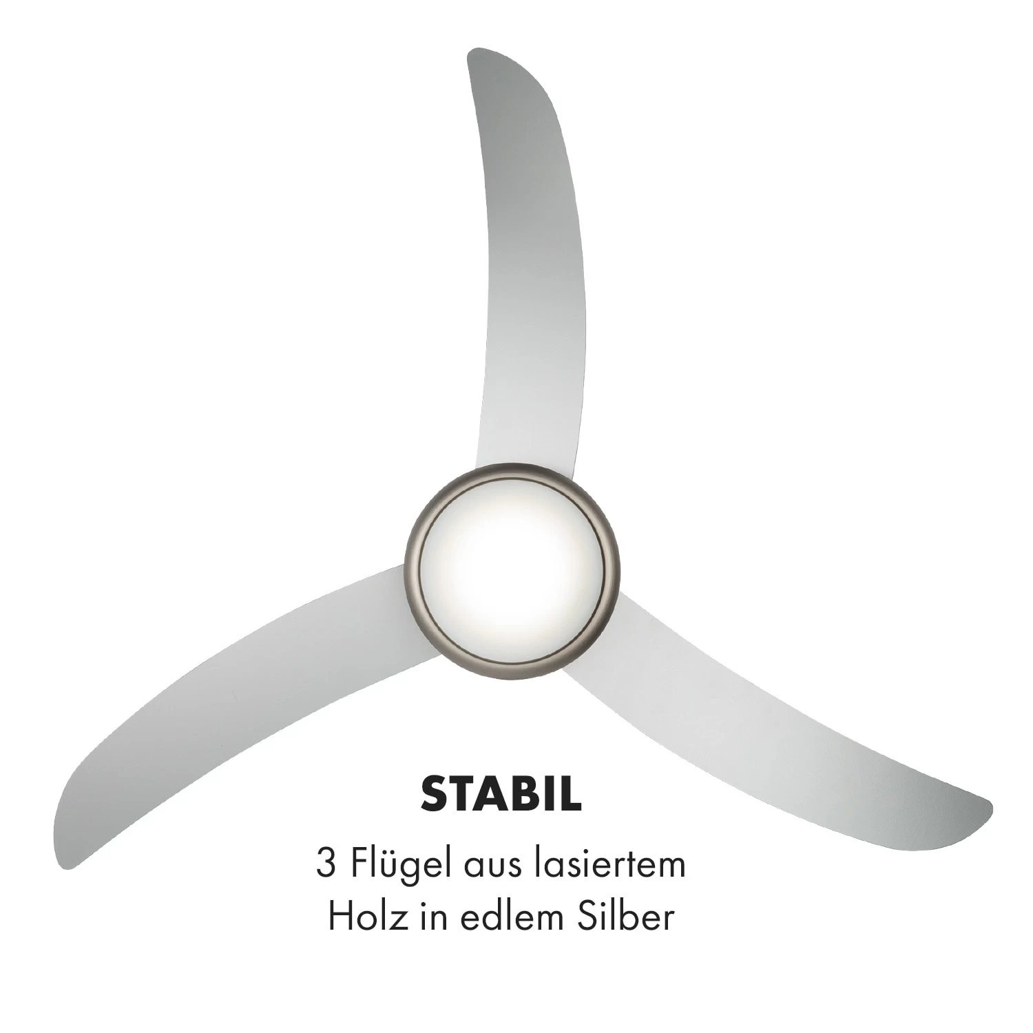 Mit einem Durchmesser von 52″ (132 cm), den 3 Geschwindigkeitsstufen hoch, mittel, niedrig und 180 Rotationen-pro-Minute setzt der Klarstein El Paso Deckenventilator auf Knopfdruck zuverlässig Luftmassen in Bewegung. Dabei bewegt er bis zu 10.344 m³ Luft in der Stunde. Seine drei robusten Flügel in Silber-Optik, die je nach Wunsch zwei verschiedene Laufrichtungen einschlagen können, ermöglichen den Einsatz an warmen und kalten Tagen: Im Rechtslauf drückt er warme Luft von der Decke nach unten und hilft so beim Heizen im Winter. Im Linkslauf versorgt er dagegen das ganze Zimmer mit einem erfrischenden Luftstrom und verschafft dir Erleichterung an heißen Tagen. Eine integrierte Deckenlampe mit E27-Sockel bringt zudem Licht ins Dunkel und ermöglicht die platzsparende Installation direkt am vorhandenen Stromnetz. Darüber hinaus können viele Funktionen des El Paso direkt vom Boden per Fernbedienung gesteuert werden.
