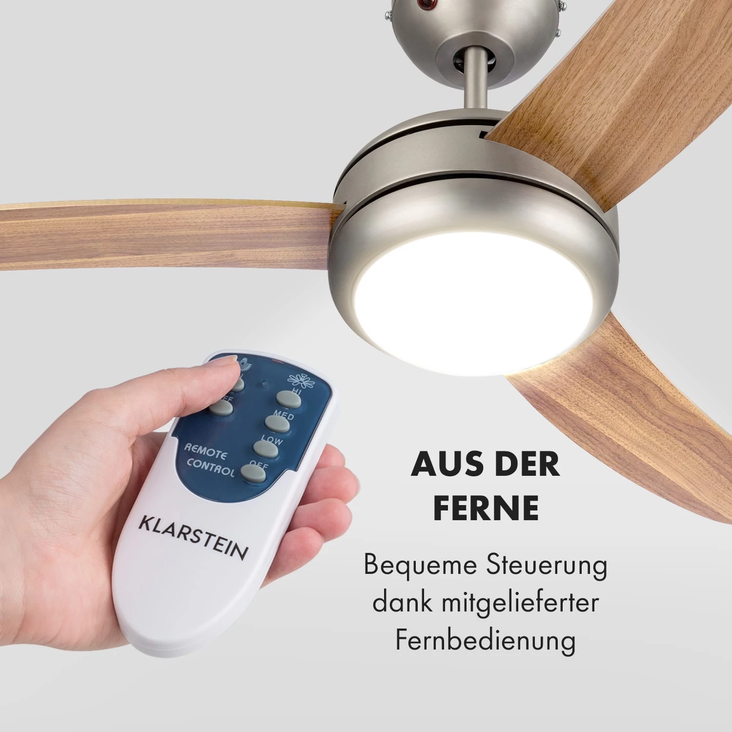 Erfrischung, Wärmezirkulation und Deckenbeleuchtung in einem: Der Klarstein El Paso 2-in-1 Deckenventilator überzeugt mit vielen Funktionen und bequemer Fernsteuerung.