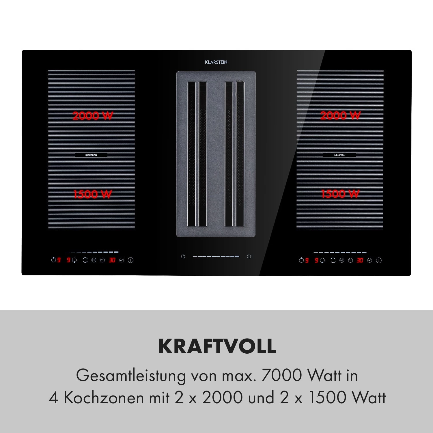 - Gesamtleistung Induktionsherd: bis 7000 W