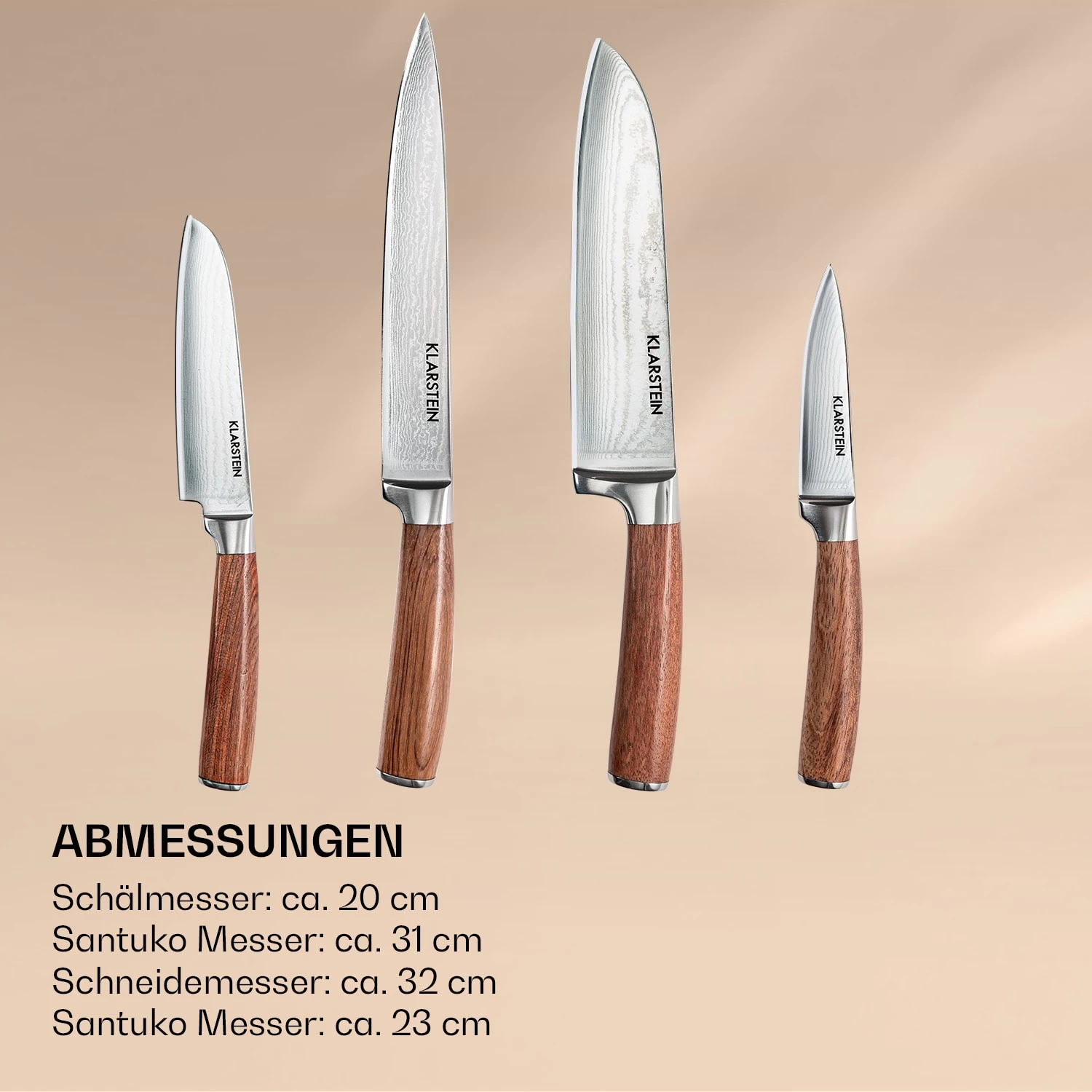 Kaito Damaszener Messerset 4-teilig Extra Scharf Griffe Aus Rosenholz