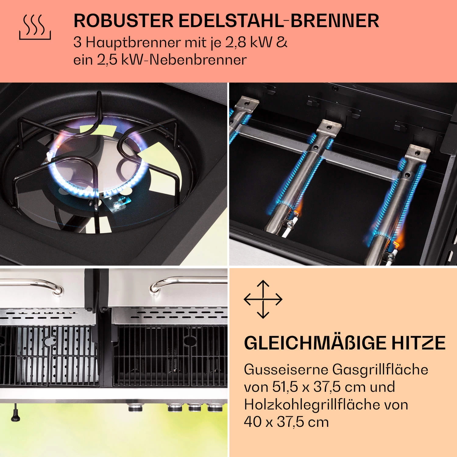 - Gasgrillfläche: 51,5 x 37,5 cm