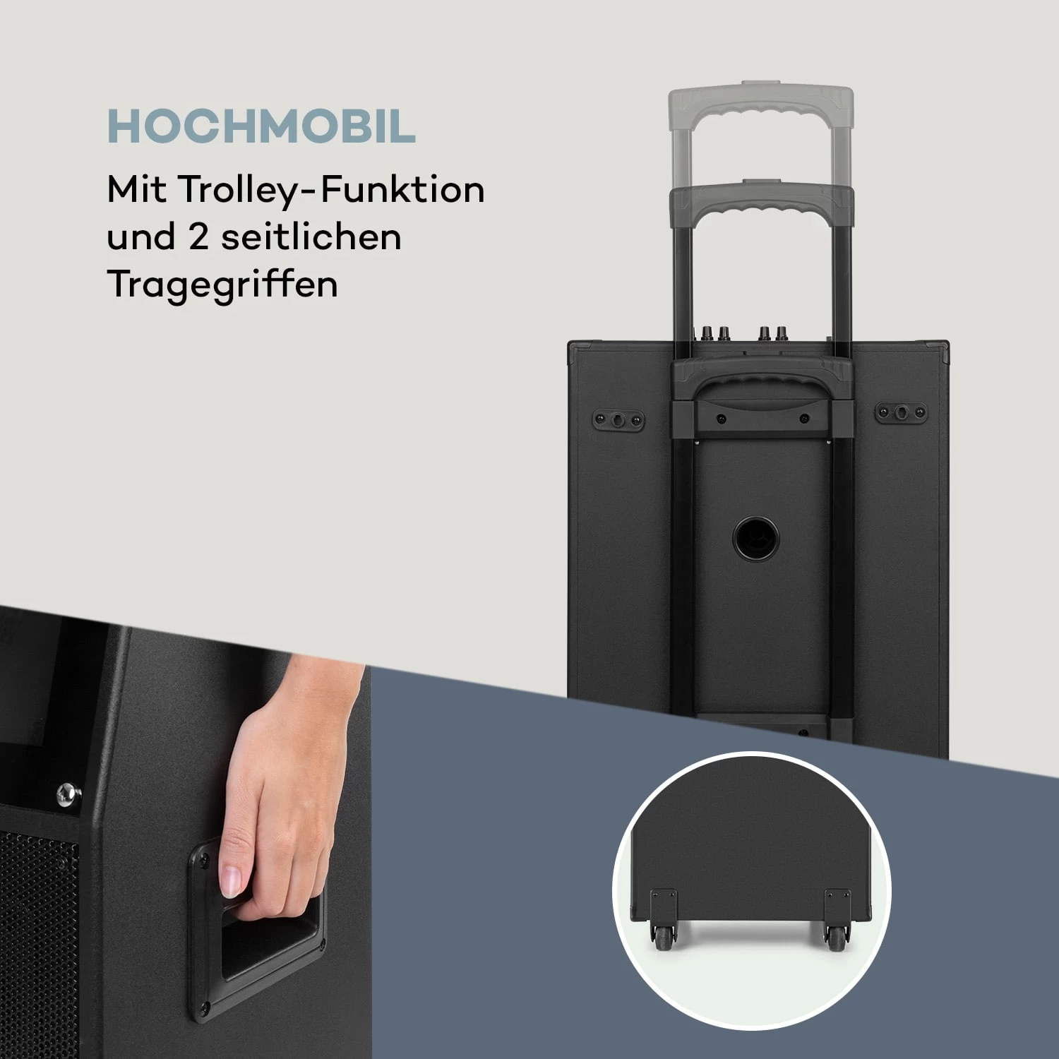 - verlängerter Trolley-Griff zum bequemen Ziehen