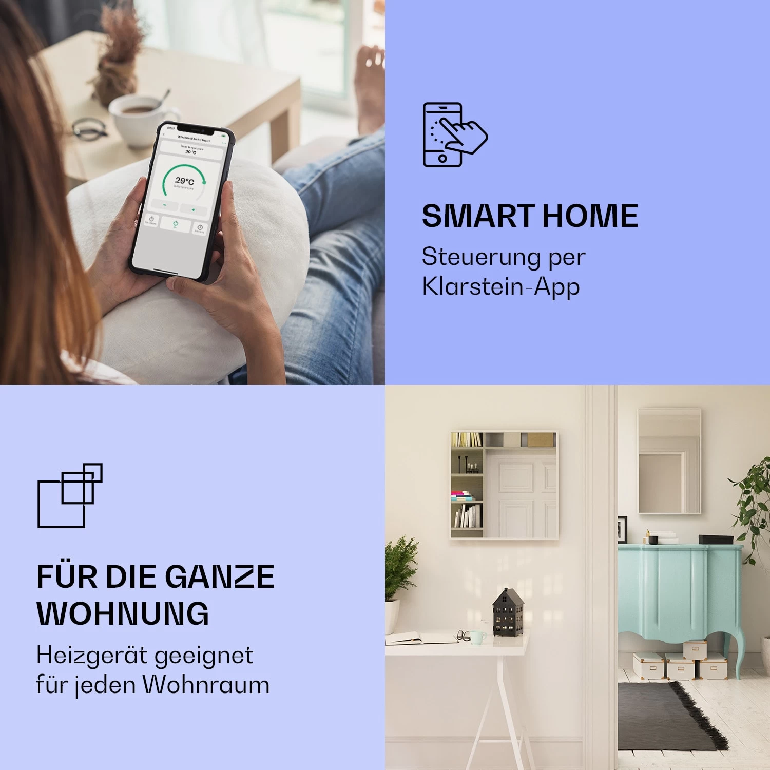 La Palma 1000 Smart 2-in-1 Heizgerät Infrarot Konvektor 120x60cm 1000W Spiegel