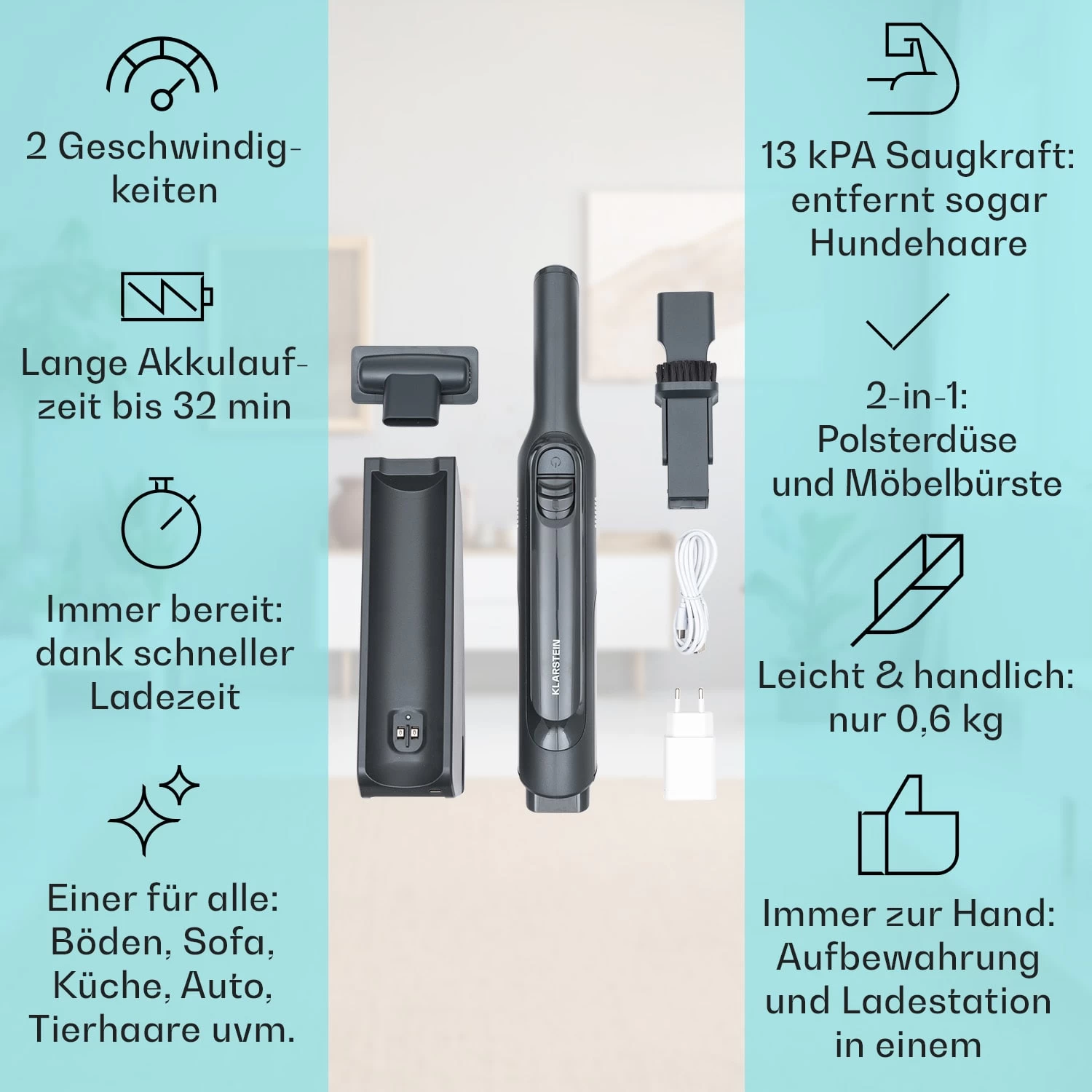 LARMA Akku-Handstaubsauger Kabellos Beutellos Akkubetrieben 32 Min Laufzeit Max.