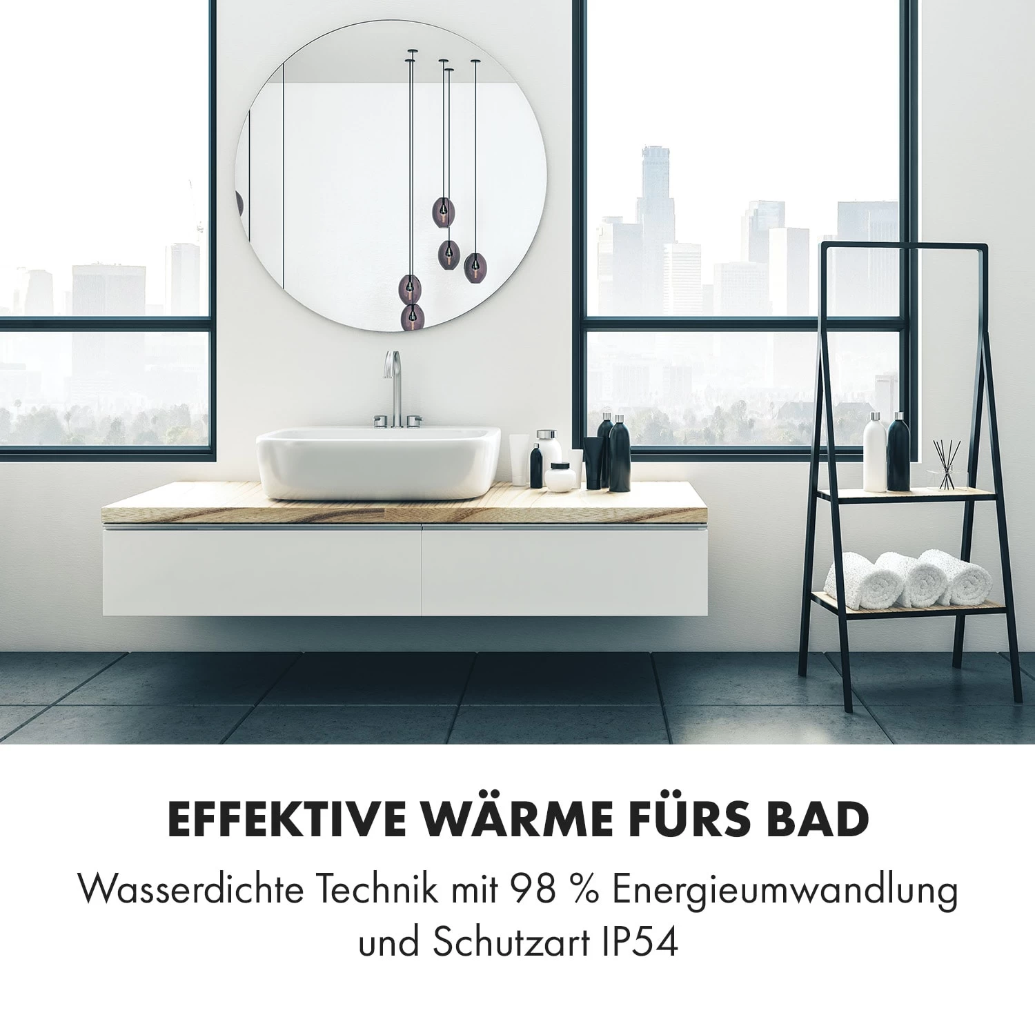 Marvel Mirror Infrarotheizung 300W Wochentimer IP54 Spiegel Rund