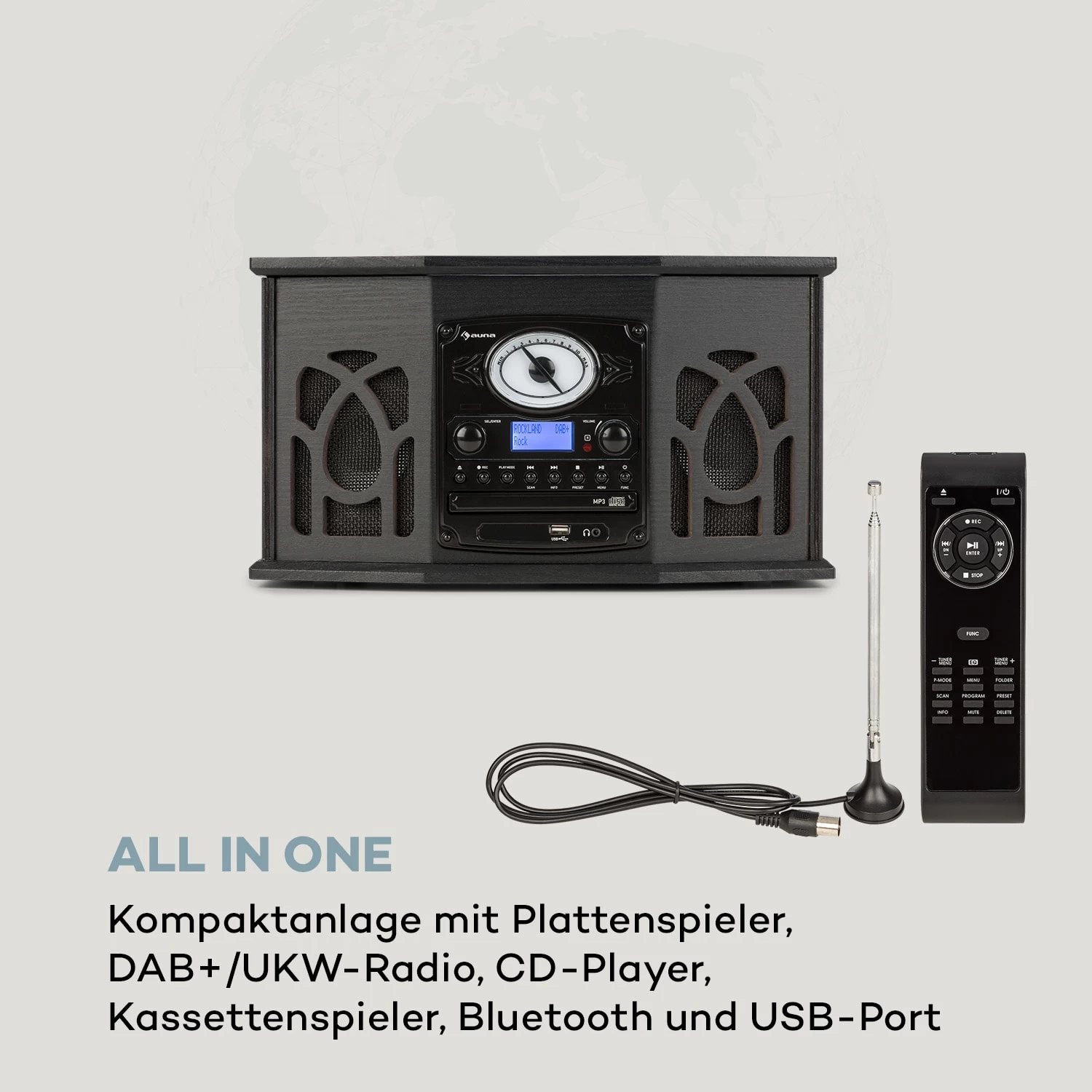 Die auna NR-620 DAB Stereoanlage verbindet die Vergangenheit mit der Zukunft: Sie bietet zahlreiche Abspielmöglichkeiten und beeindruckt durch ihr nostalgisches Design.