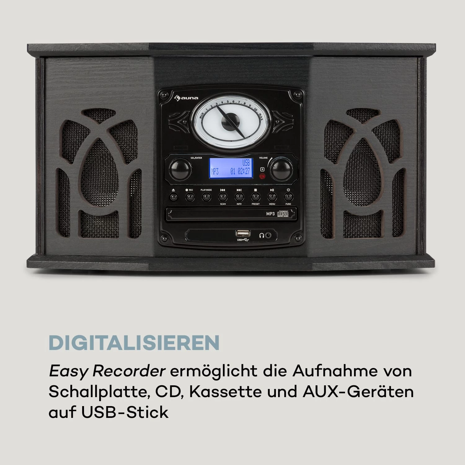 Die NR-620 Stereoanlage von auna fügt sich durch ihr elegantes, gemütliches Design nahtlos ins Wohnambiente ein und begeistert mit ihrer Funktionsvielfalt.