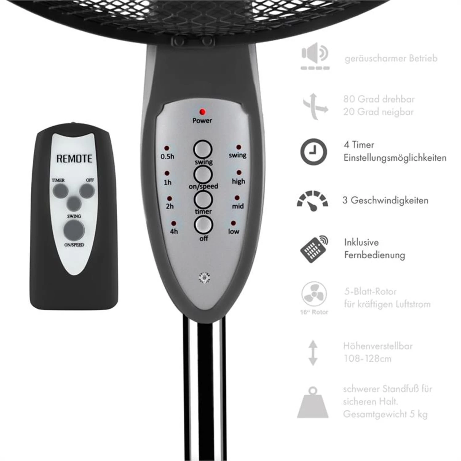 - Durchmesser Standfuß (je Ventilator): ca. 40 cm