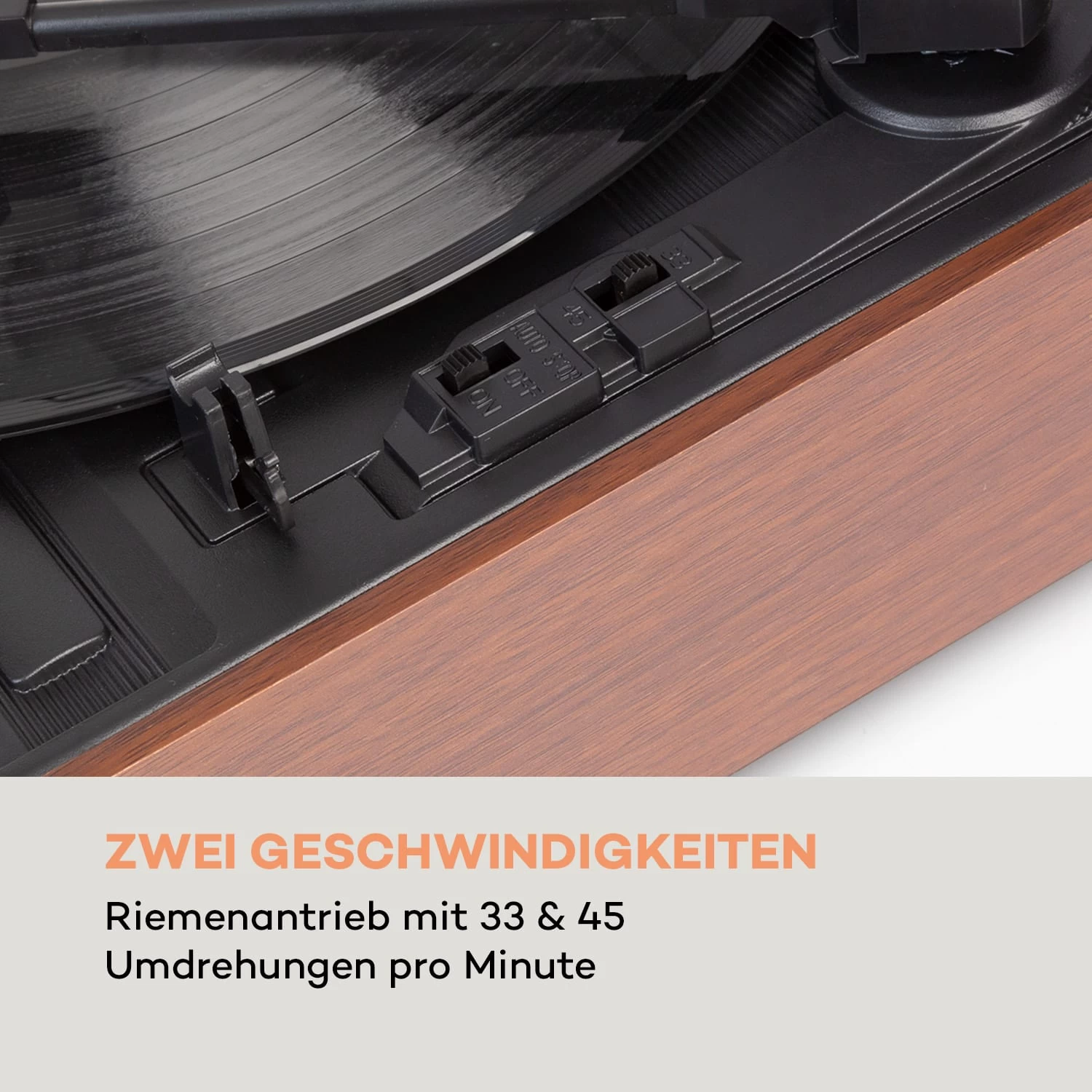 Der auna TT-138 DAB Plattenspieler bietet dank Riemenantrieb, hochwertigem Radioempfang und 2 integrierten Lautsprechern hochwertige Klangerlebnisse für jeden Anlass.