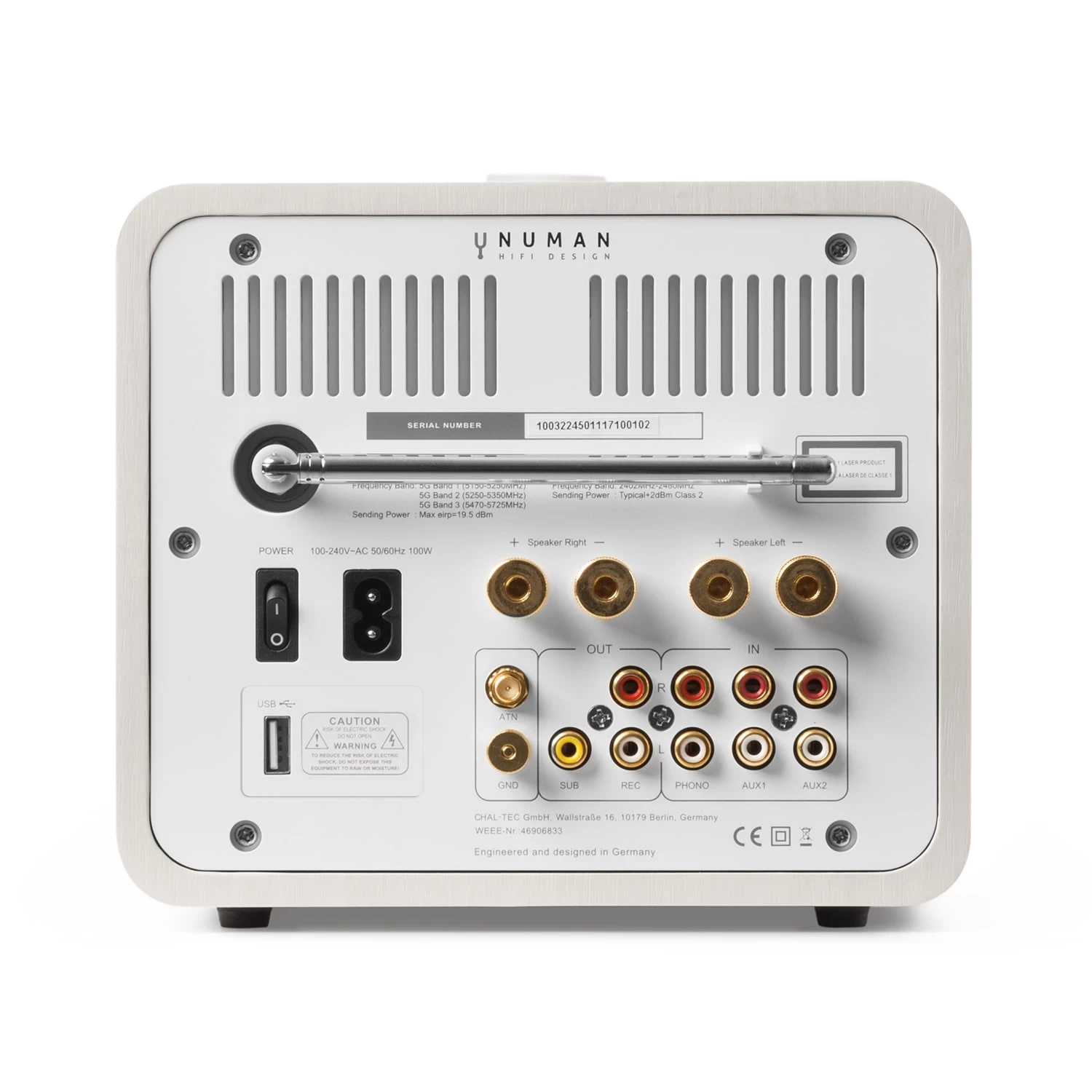 Besonders unique gelingt die Positionierung des NUMAN Unison All-in-One-Receivers durch die Integration eines kraftvollen Verstärkers, der eine Ausgangsleistung von 2 x 40 W RMS an die angeschlossenen Lautsprecher liefert. Schlussendlich wurde auch an die Möglichkeit der Signal-Weiterleitung für einen Subwoofer gedacht, der rückseitig am Unison angeschlossen wird.