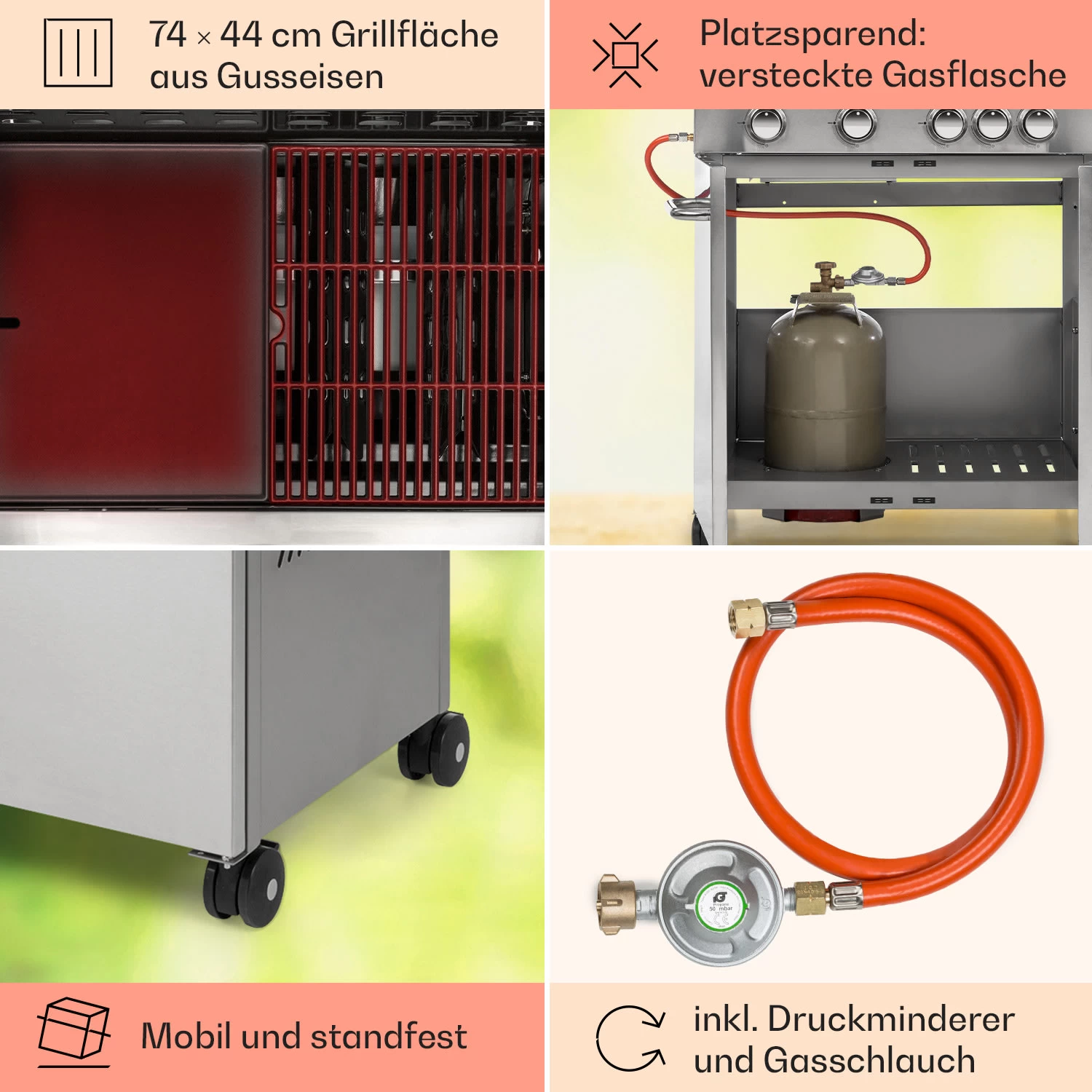 - Maße Grillfläche: ca. 74 x 44 cm (BxT)