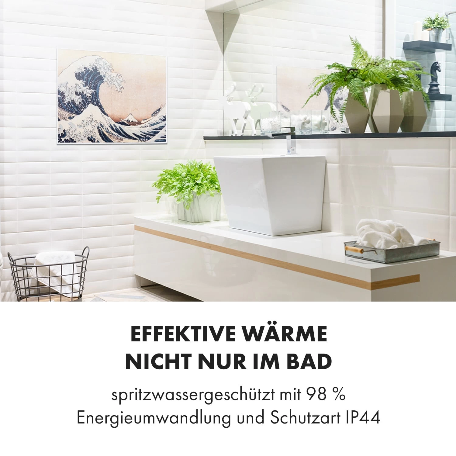 Die Klarstein Wonderwall Air Art Smart Infrarotheizung vereint hocheffiziente Heizleistung mit ansprechendem Design und innovativer Technik. Das 80 x 60 cm große Heizpanel kann direkt an die Wand gehängt werden, ist nur 5 cm hoch und kaum größer als ein gerahmtes Bild. Mit seiner starken 500 Watt Leistung und dank IR ComfortHeat verbreitet es für die menschliche Haut sehr angenehme Wärme, ohne sich in der Luft zu verlieren. Durch die Infrarot-Technologie ist das Heizpanel äußerst energieeffizient und umweltfreundlich, da ganze 98 % der Leistung in Wärmestrahlung umgewandelt wird. Smarte Funktionen zur Steuerung per App, Thermostat, Auto-Abschaltfunktion und Schutzklasse IP44 runden die Innovation gekonnt ab.